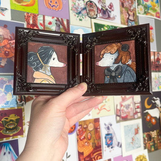 *ORIGINAL* Opossum Paintings in Vintage Frame